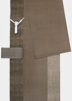 本場結城紬 八寸名古屋帯 彩光 (白鼠) ¥228,000