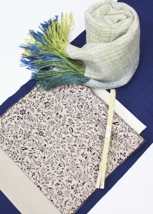 江戸更紗 結城紬 9寸帯 摘み草 ¥175,000